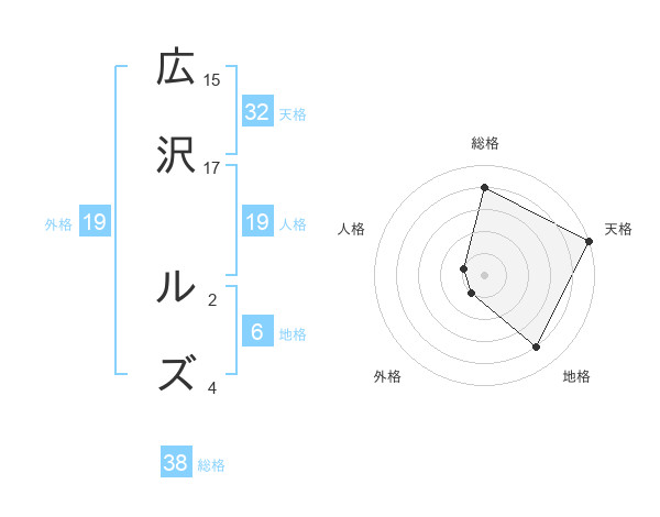 広沢 ルズさんの総格は38画の4点!