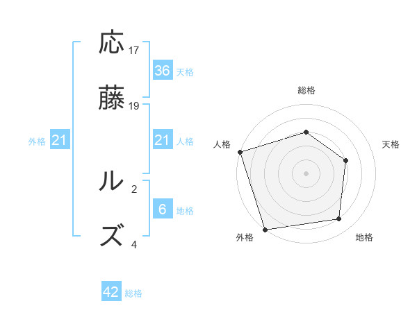 応藤 ルズさんの外格は21画の5点!