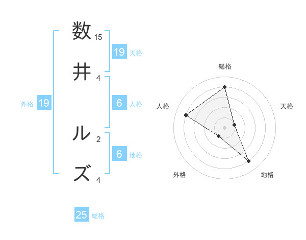 数井 ルズさんの総格は25画の4点!