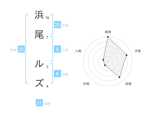 浜尾 ルズさんの総格は31画の5点!