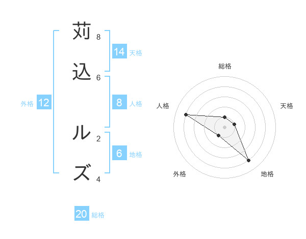 苅込 ルズさんの総格は20画の1点!