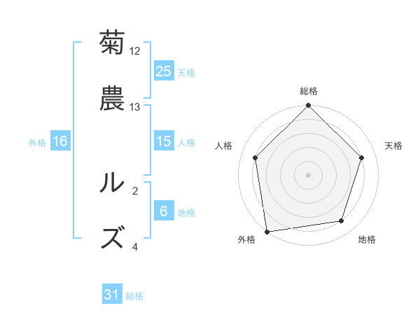 菊農 ルズさんの総格は31画の5点!