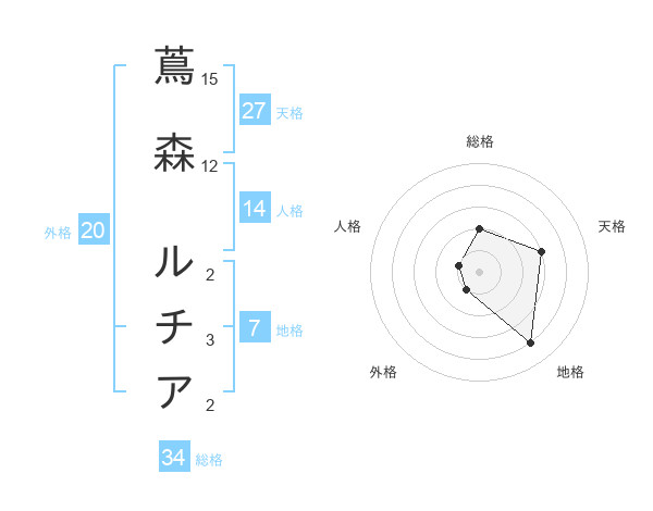 蔦森 ルチアさんの天格は27画の3点!