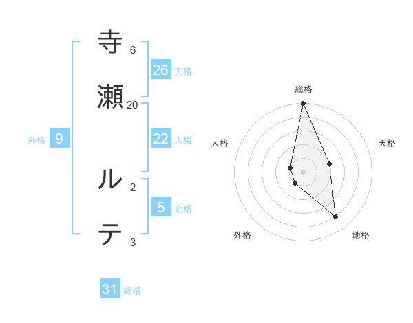 寺瀬 ルテさんの総格は31画の5点!