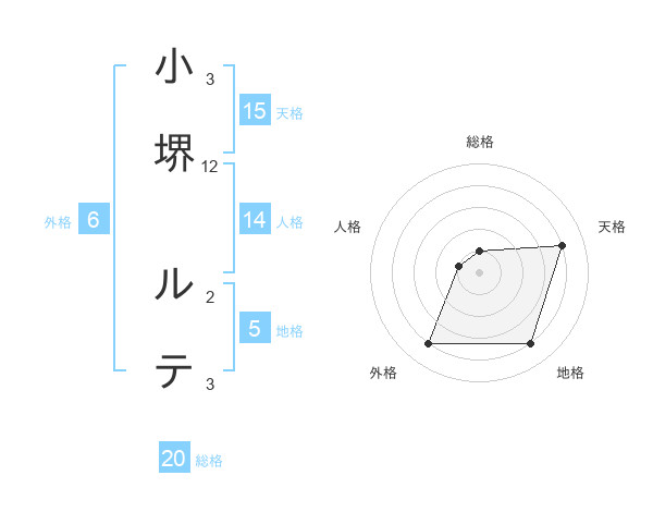 小堺 ルテさんを姓名の画数から五運を鑑定