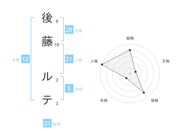 後藤 ルテさんを姓名の画数から五運を鑑定