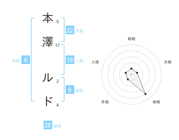 本澤 ルドさんを姓名の画数から五運を鑑定