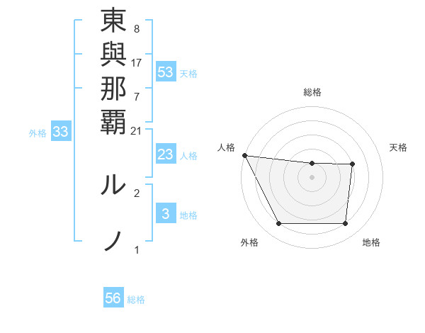 東與那覇 ルノさんを姓名の画数から五運を鑑定