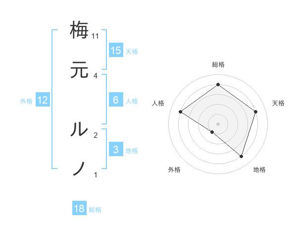 梅元 ルノさんを姓名の画数から五運を鑑定