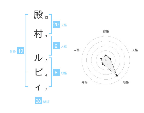 殿村 ルビィさんを姓名の画数から五運を鑑定
