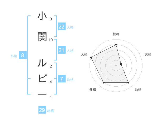 小関 ルビーさんの天格は22画の1点!