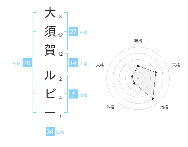 大須賀 ルビーさんの総格は34画の2点!