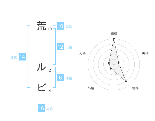 荒 ルビさんの総格は16画の5点!