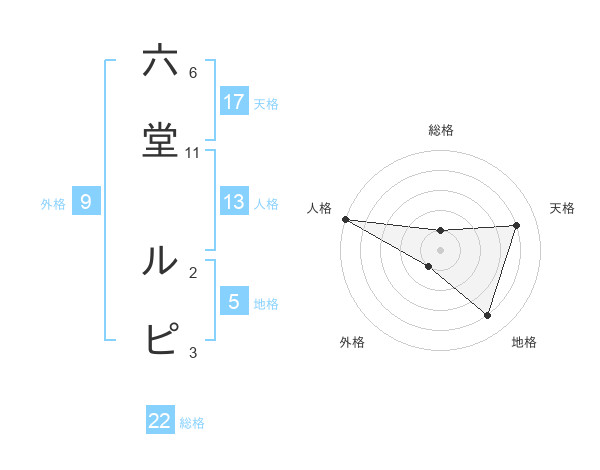 六堂 ルピさんの総格は22画の1点!