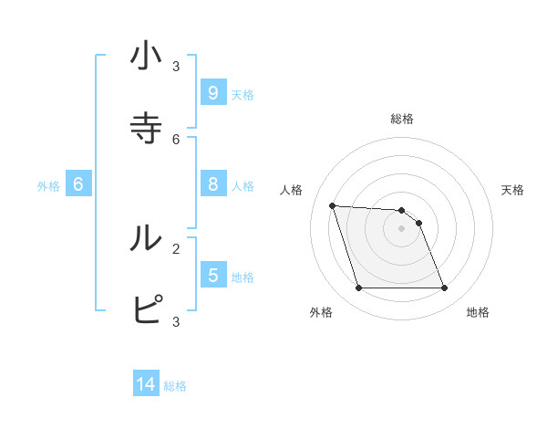 小寺 ルピさんを姓名の画数から五運を鑑定