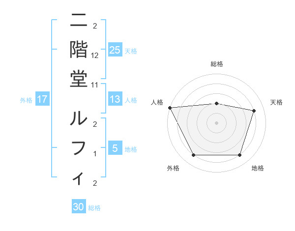 二階堂 ルフィさんを姓名の画数から五運を鑑定