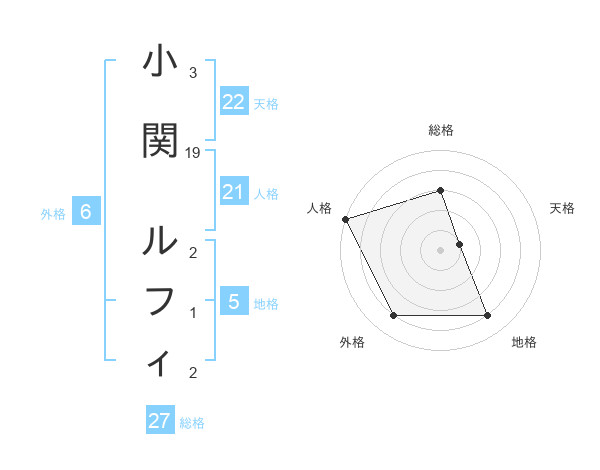 小関 ルフィさんを姓名の画数から五運を鑑定