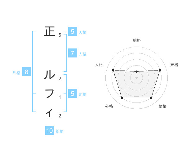 正 ルフィさんの天格は5画の4点!