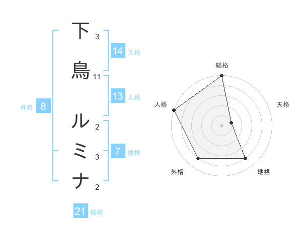 下鳥 ルミナさんを姓名の画数から五運を鑑定