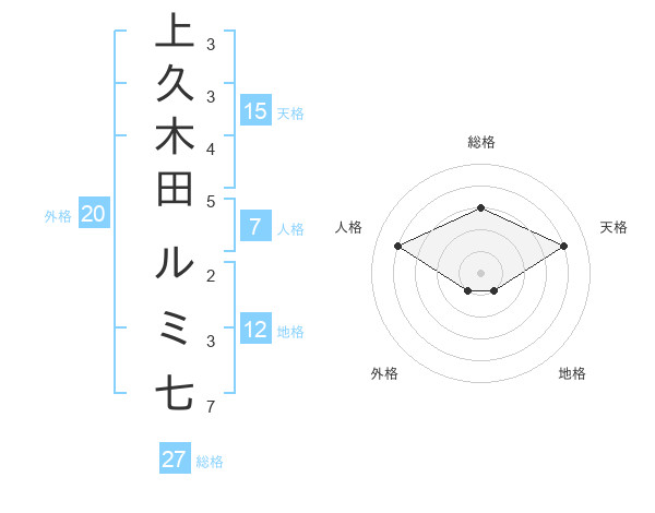 上久木田 ルミ七さんの外格は20画の1点!