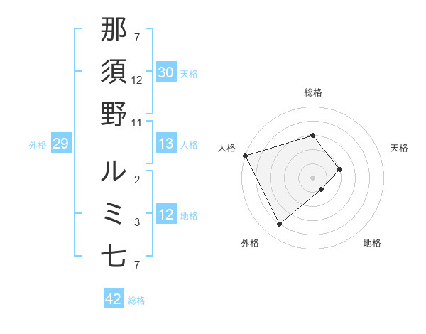 那須野 ルミ七さんを姓名の画数から五運を鑑定