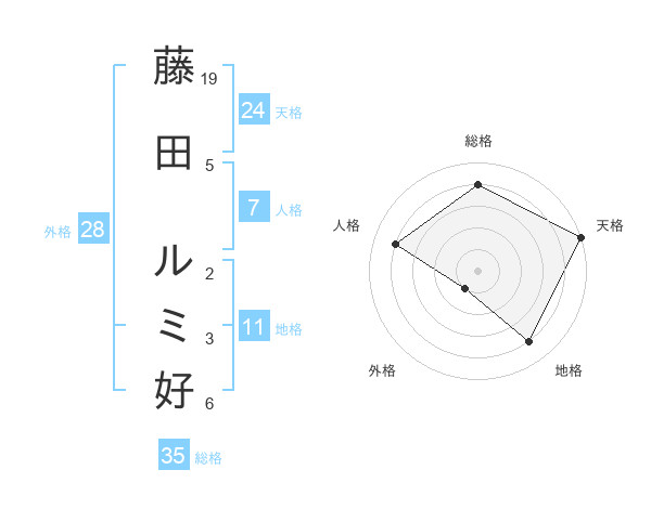 藤田 ルミ好さんを姓名の画数から五運を鑑定