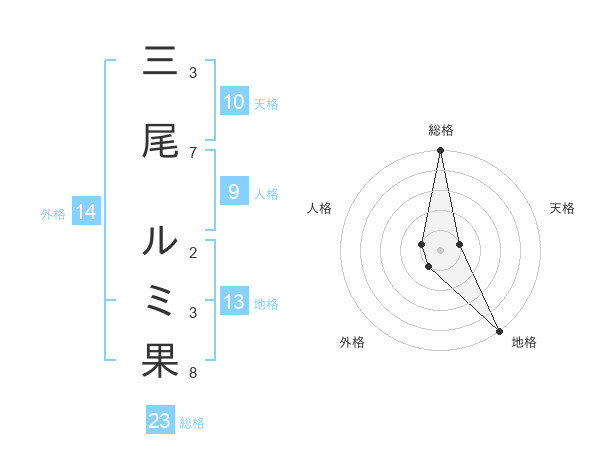 三尾 ルミ果さんを姓名の画数から五運を鑑定