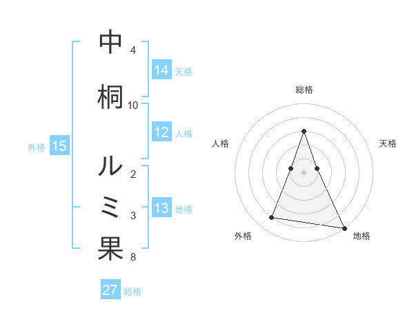 中桐 ルミ果さんを姓名の画数から五運を鑑定