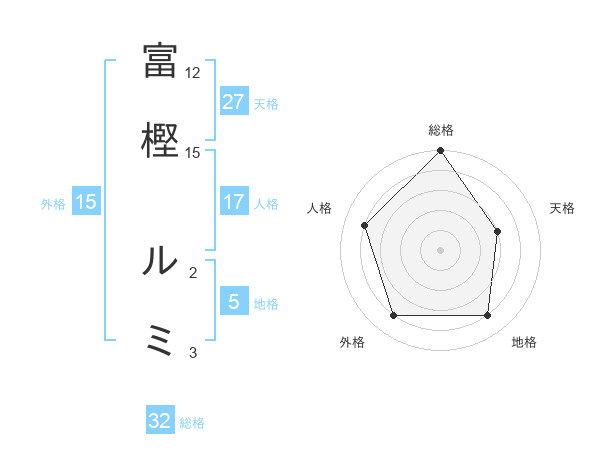富樫 ルミさんの総格は32画の5点!