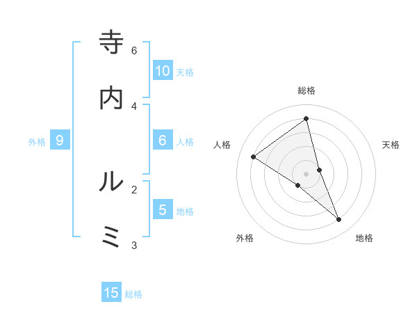 寺内 ルミさんの総格は15画の4点!