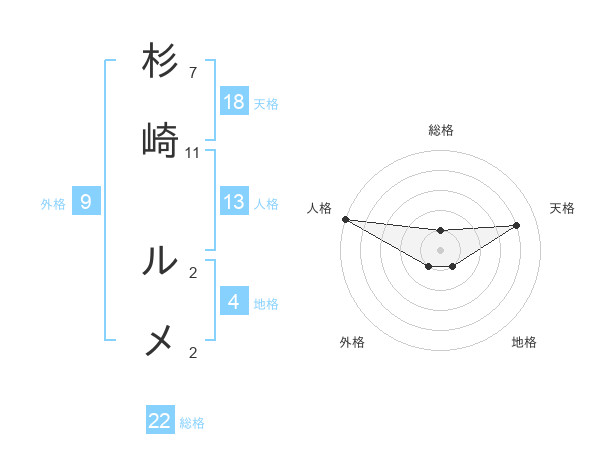 杉崎 ルメさんの天格は18画の4点!