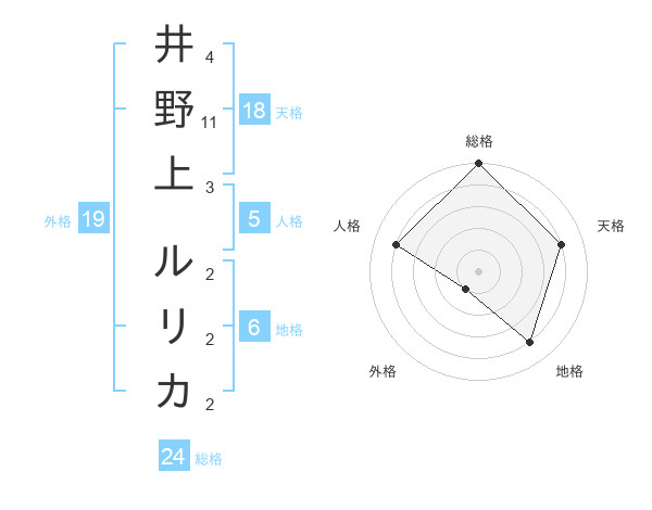 井野上 ルリカさんを姓名の画数から五運を鑑定