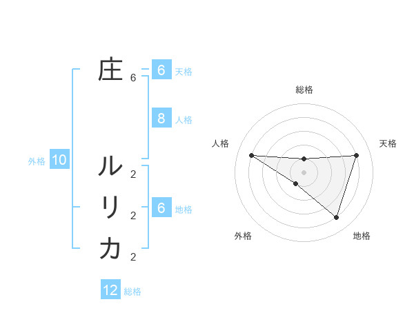 庄 ルリカさんの総格は12画の1点!