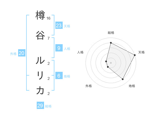 樽谷 ルリカさんを姓名の画数から五運を鑑定