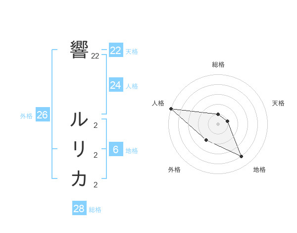 響 ルリカさんの天格は22画の1点!
