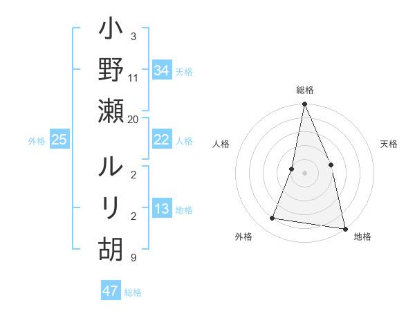 小野瀬 ルリ胡さんの総格は47画の5点!