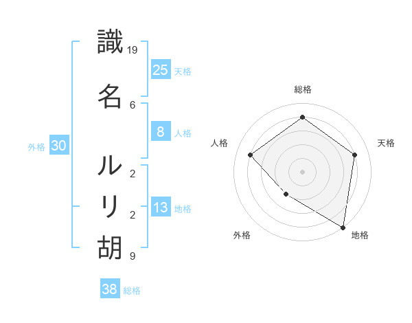 識名 ルリ胡さんの総格は38画の4点!