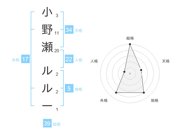 小野瀬 ルルーさんの総格は39画の5点!