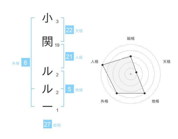 小関 ルルーさんを姓名の画数から五運を鑑定