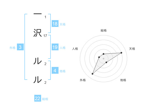 一沢 ルルさんを姓名の画数から五運を鑑定