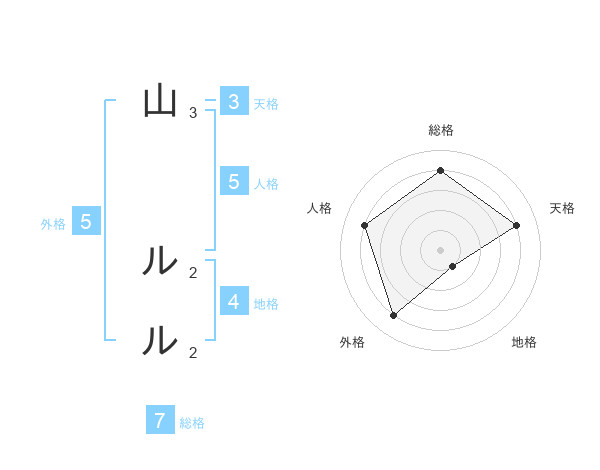 山 ルルさんの総格は7画の4点!