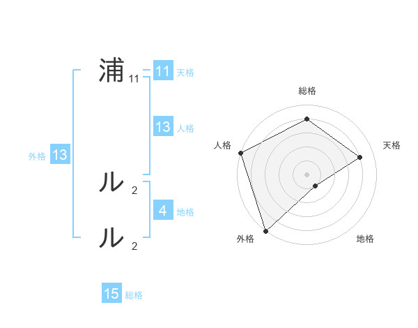 浦 ルルさんの総格は15画の4点!