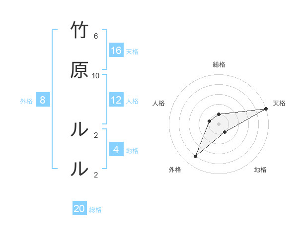 竹原 ルルさんの総格は20画の1点!
