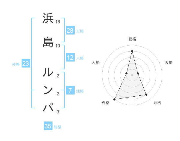 浜島 ルンパさんを姓名の画数から五運を鑑定