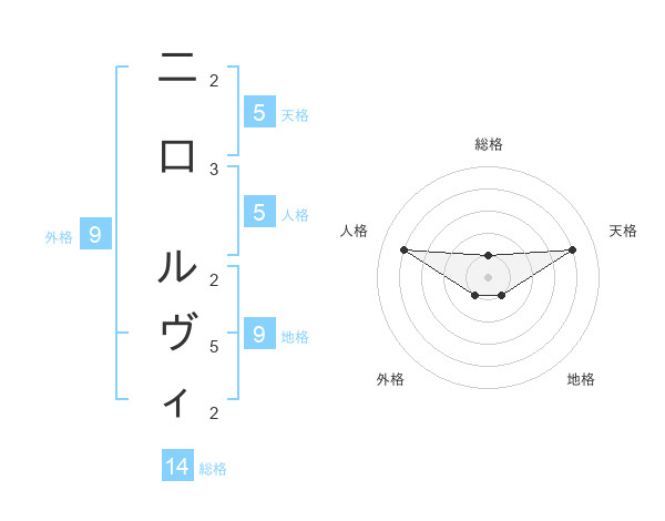 二口 ルヴィさんを姓名の画数から五運を鑑定
