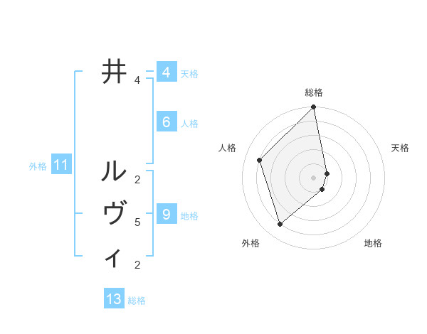 井 ルヴィさんを姓名の画数から五運を鑑定