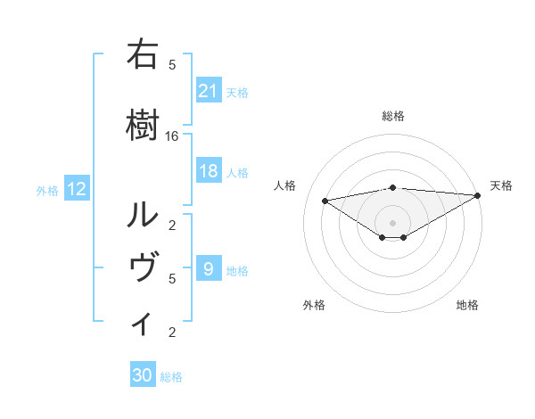 右樹 ルヴィさんを姓名の画数から五運を鑑定