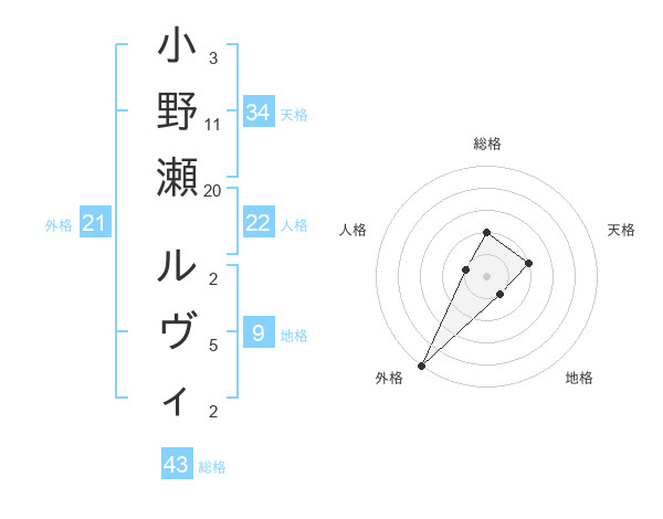 小野瀬 ルヴィさんを姓名の画数から五運を鑑定