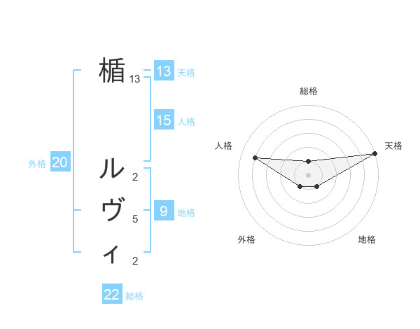 楯 ルヴィさんを姓名の画数から五運を鑑定