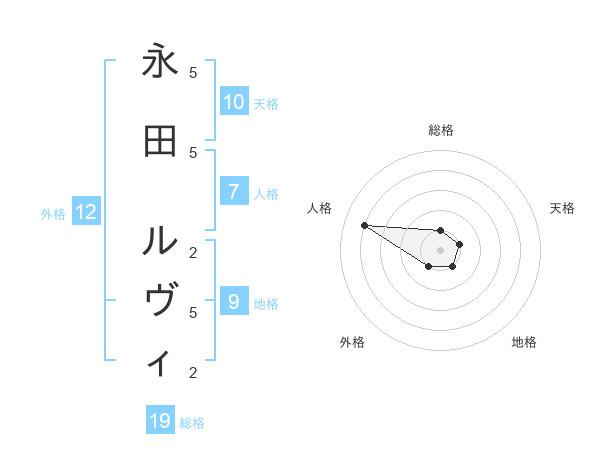 永田 ルヴィさんを姓名の画数から五運を鑑定